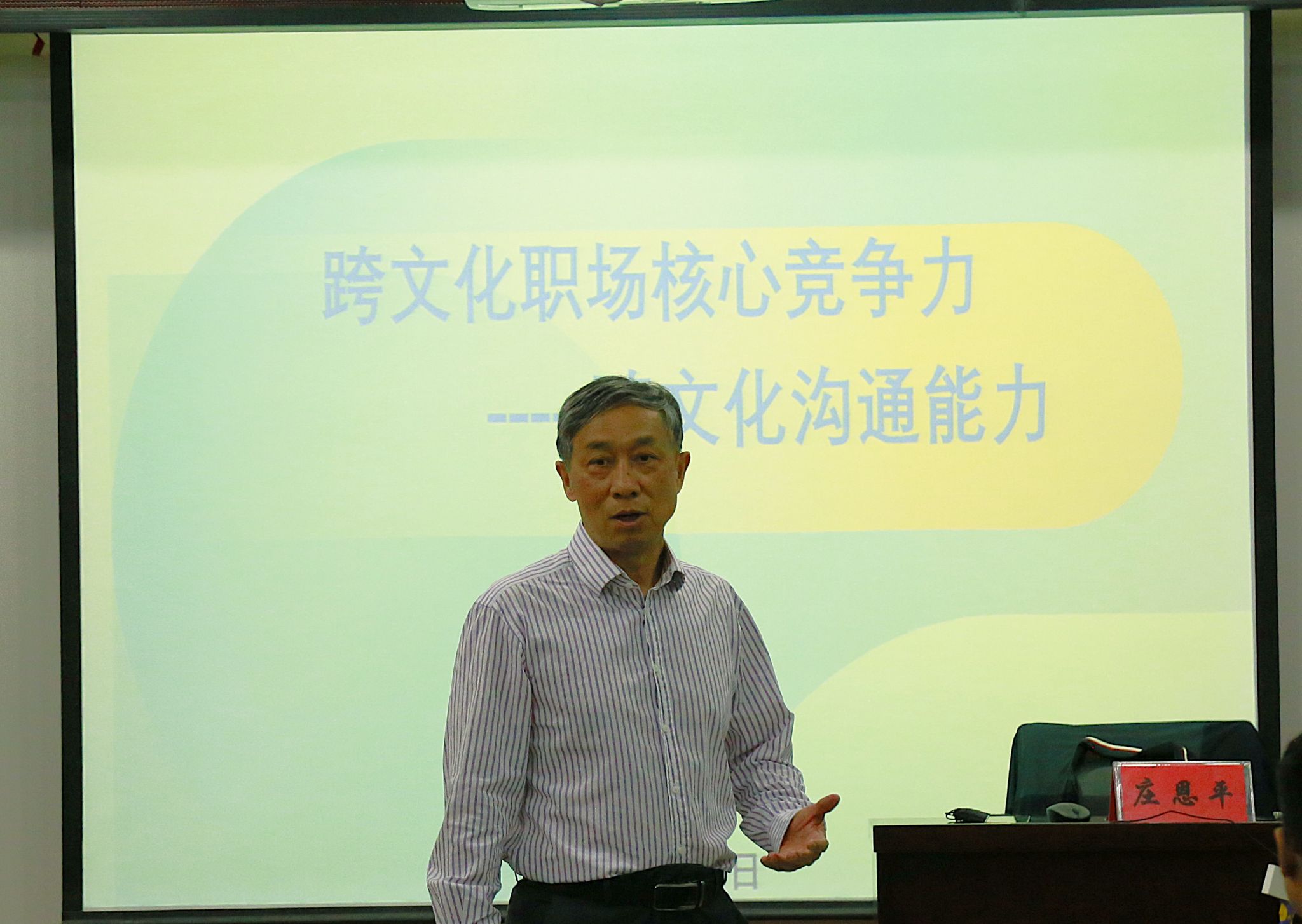 庄恩平教授以“跨文化职场核心竞争力——跨文化沟通力”为题,以中国企业走出去所面临的跨文化挑战为例,用跨文化分析视角破解企业跨文化冲突之谜,为企业出海提供跨文化解决方案。此外,庄恩平教授结合自身实际经验,通过分享他和学生在日常工作生活中的跨文化事件,强调跨文化沟通力在职场中的重要性,为外语专业学生职业发展指明方向。同学们积极互动,现场气氛热烈。