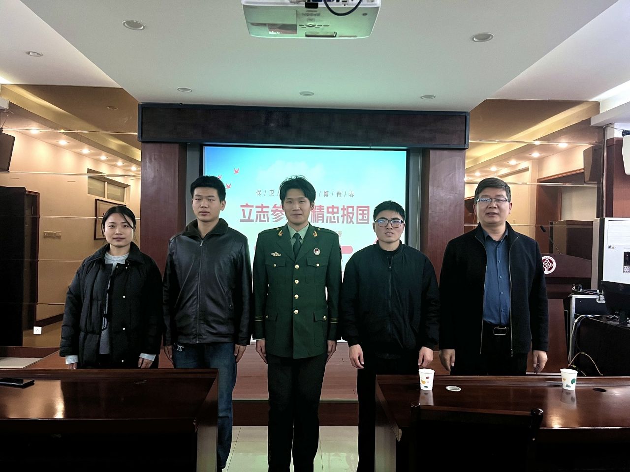 党委副书记王晓东、学工办主任郭珊珊、学生干部代表和有应征入伍意向的学生参加了会议。会议特邀学校征兵宣讲团成员担任主讲嘉宾。