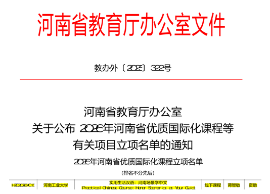 近日,河南省教育厅公布了2026年度河南省优质国际化课程立项名单。網上賭博平台