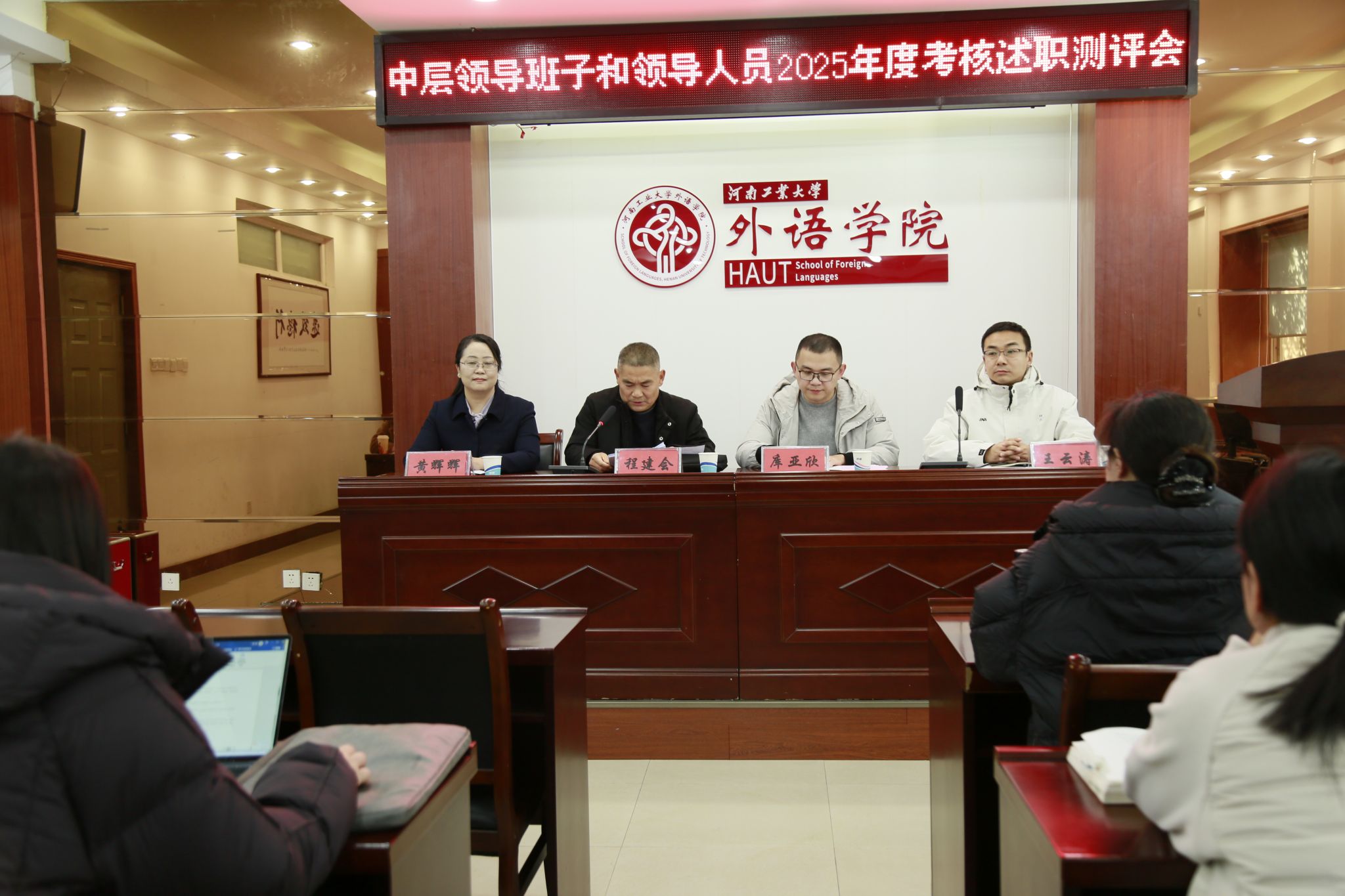 在5225会议室召开2025年度中层领导班子和领导人员考核述职测评会。校正处级组织员程建会、人事处综合科科长库亚欣一行莅临網上賭博平台