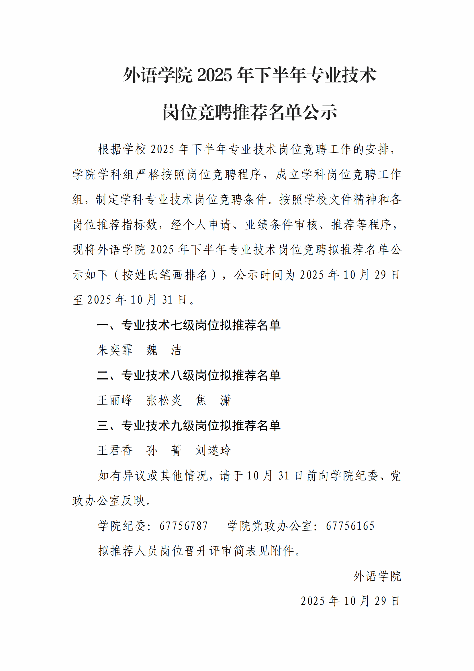 網上賭博平台 2025年下半年专业技术岗位竞聘推荐名单公示